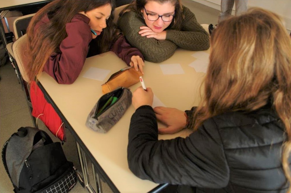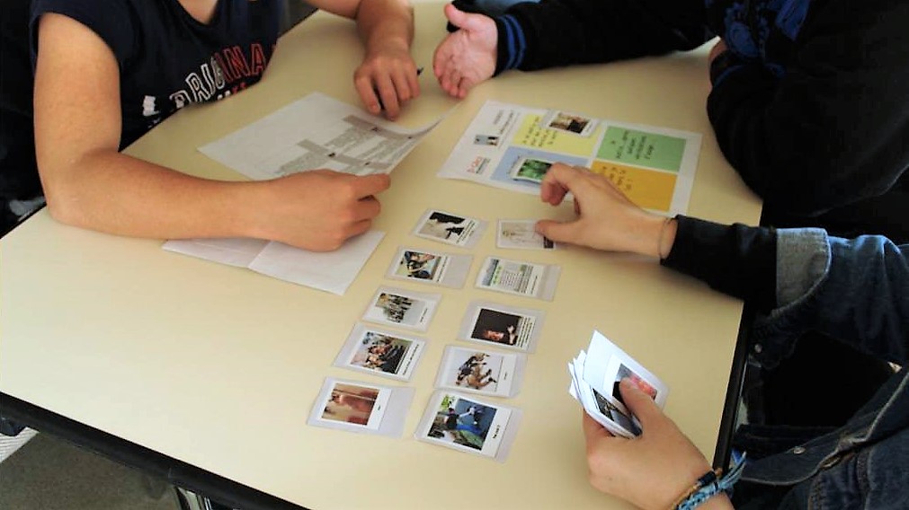 Puis, une deuxième fois, avec par groupe un rôle déterminé pour que les jeunes puissent l’analyser en détail. Ils répondent à un questionnaire où il est demandé de se mettre à la place du personnage et de parler à la première personne. Une mise en commun est faite pour en discuter et en débattre.