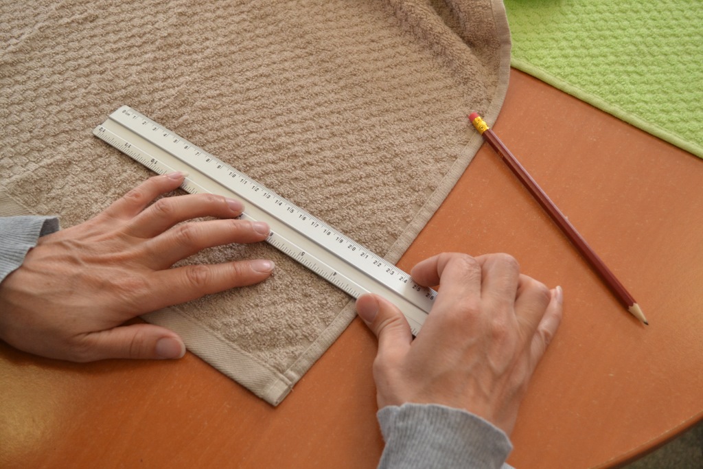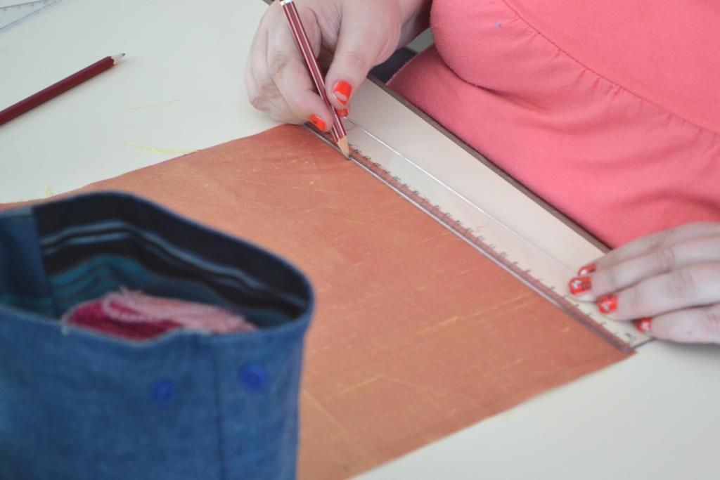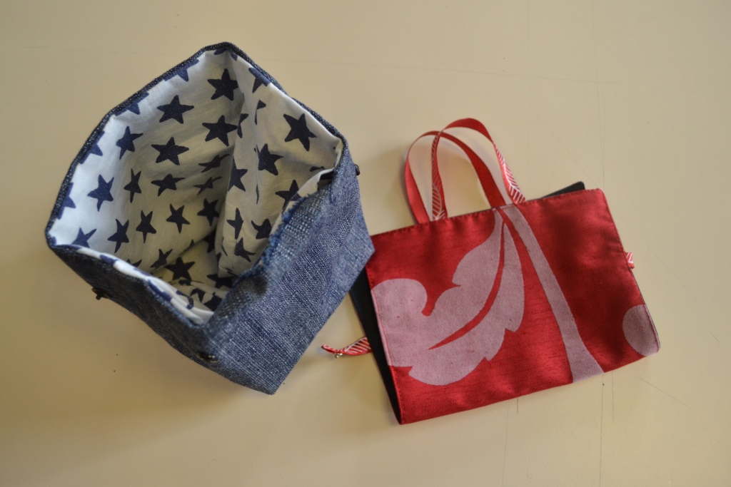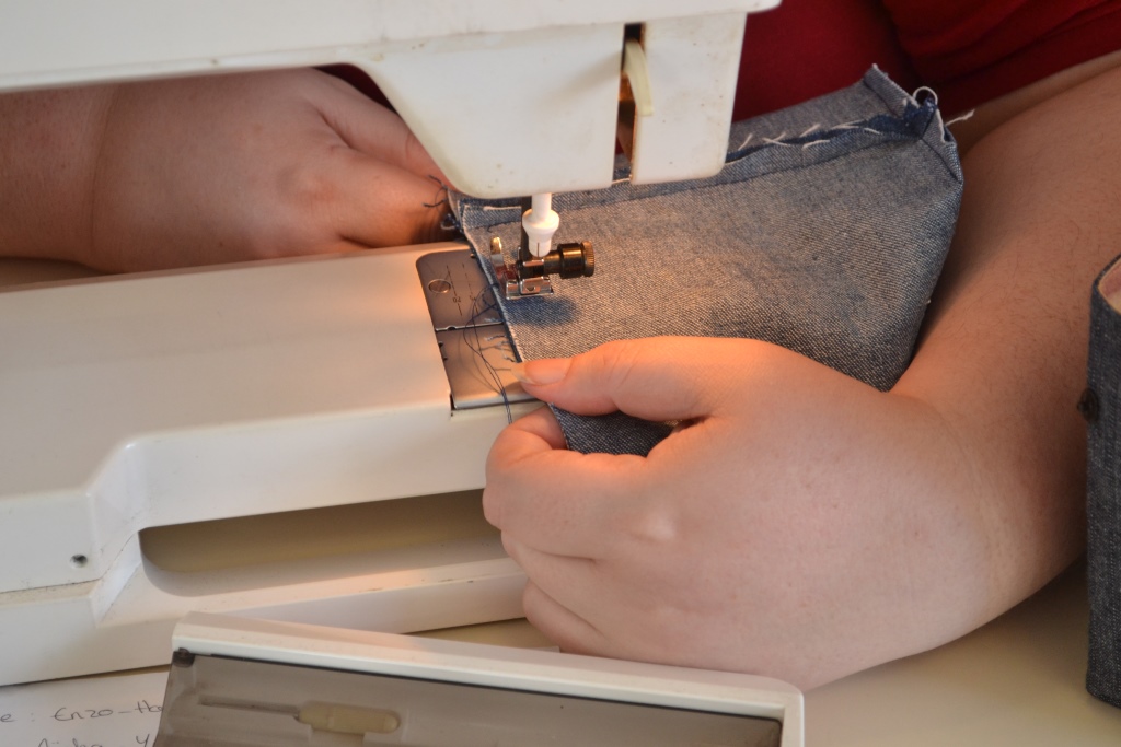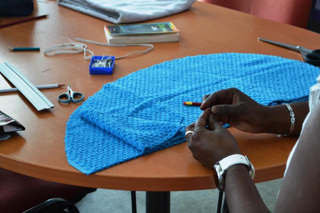 Les participantes réalisent des boites en tissu à partir de jean pour ranger des lingettes démaquillantes. Ces mêmes lingettes sont également réalisées durant l’atelier à partir de serviette de toilette.