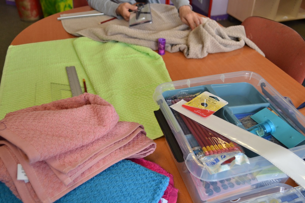 La régularité de ces interventions – tout les 15 jours – favorise la dynamique de groupe mais aussi la prise d’initiative et la création commune. L’intervenante apporte ses idées et ses projets mais les participants sont invités à proposer des pistes de réalisation. C’est ainsi qu’un porte portable afin de charger son téléphone n’importe où a vu le jour. Des serviettes de bain customisés s’adaptant au soin des cheveux ont aussi été créés.