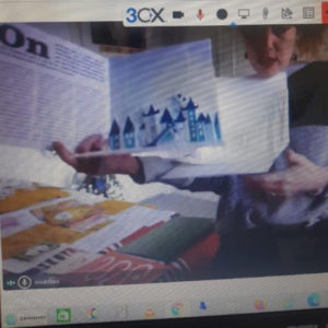 La période étant atypique, 34 bénévoles, autrice et coordination se sont connectés pour une rencontre à distance. Clémentine Sourdais a pu montrer sa manière de travailler : outils, exemples de ses travaux… L’illustratrice dévoile la façon dont elle voit son métier, ses aspirations et ses envies d’écriture, ses relations de confiance avec ses éditeurs comme Hélium, Amaterra et Seuil jeunesse.