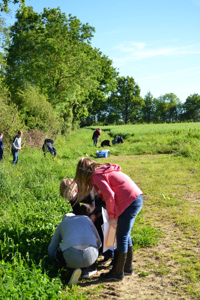 4 ateliers ont donc été proposés. Tout d’abord, Loïc, du service environnement de la fédération, proposait une chasse aux petites bêtes réfugiées dans le sol. Diverses espèces apparaissaient comme le grillon, l’araignée, la fourmi, le ver de terre, le cloporte et tant d’autres que les explorateurs ne pensaient pas trouver en si peu de temps.