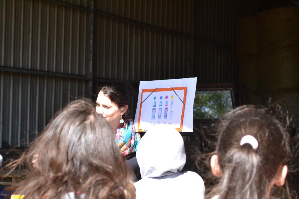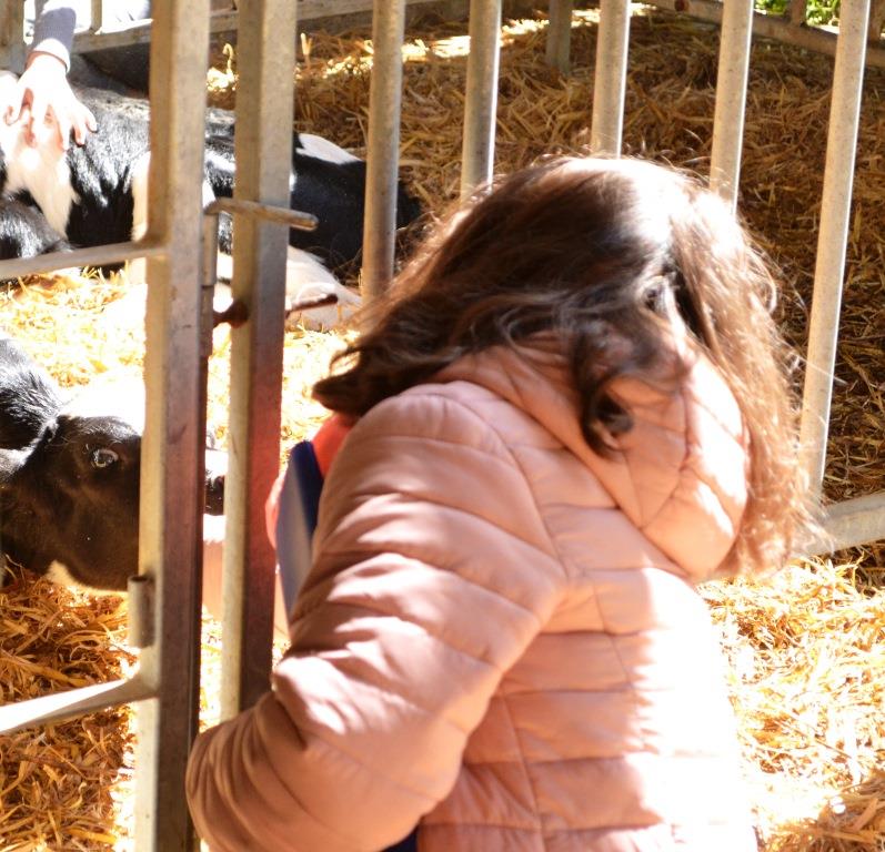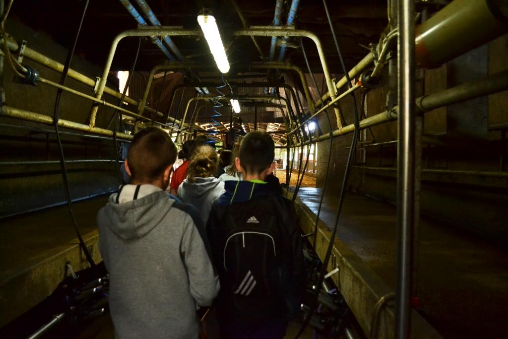 Les élèves découvrent la salle de traite et de quelle façon le lait des vaches est récupéré puis stocké. Qu’est ce que le label AB ? Quelles différences entre les laits écrémés ou non que l’on retrouve dans les supermarchés ? Vient ensuite la dégustation du lait cru puis un moment de découverte auprès des veaux.