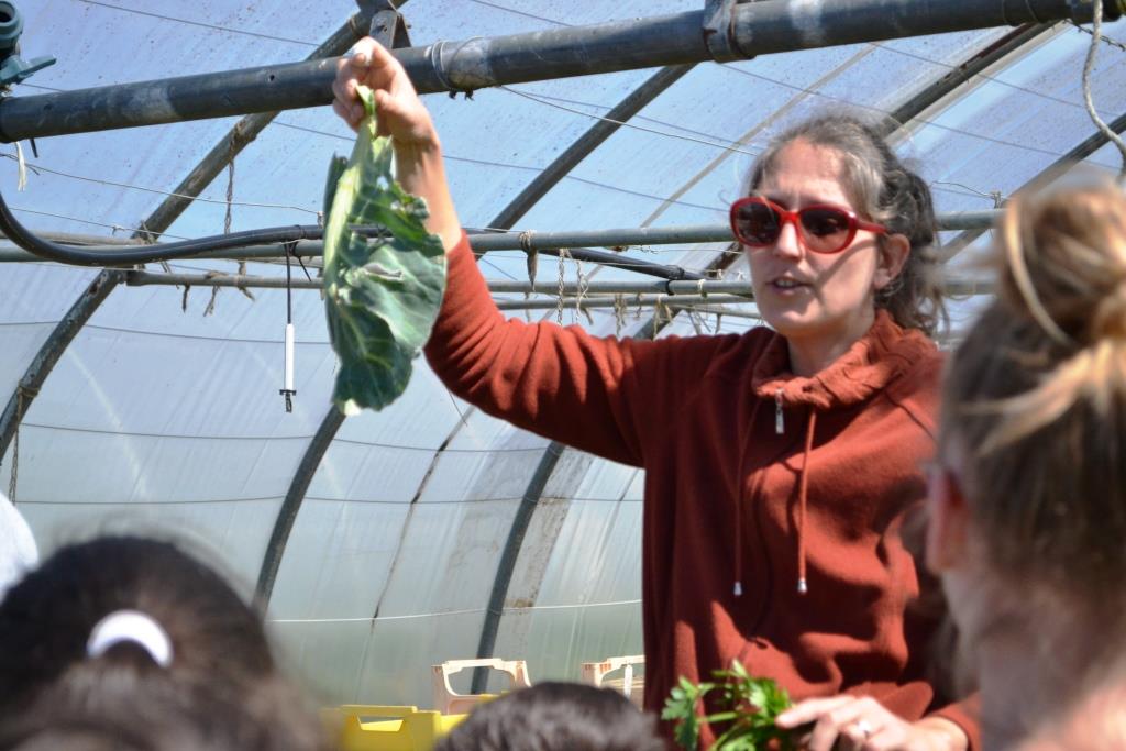 La demi-journée se termine avec Floriane dans les cultures maraîchères. Elle explique le pivot des différentes familles de légumes pour repousser les insectes voulant s’installer sur une espèce particulière.