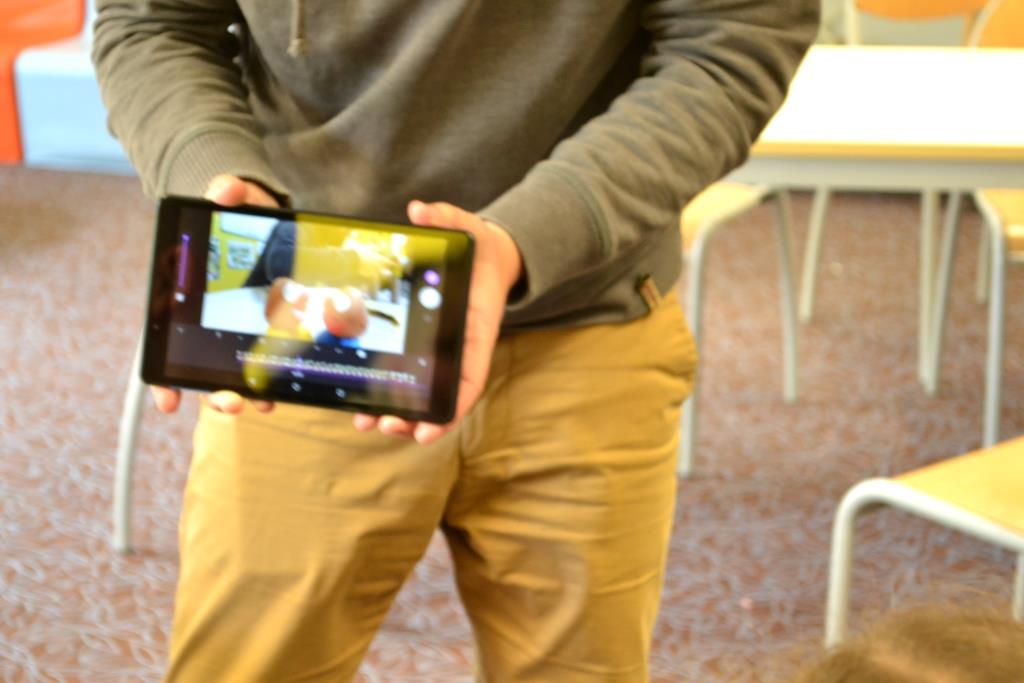 Emmanuel, accompagné de Lucas en service civique, anime un atelier pour réaliser un film animé durant le temps des Nouvelles Activités Périscolaires aux Clouzeaux.